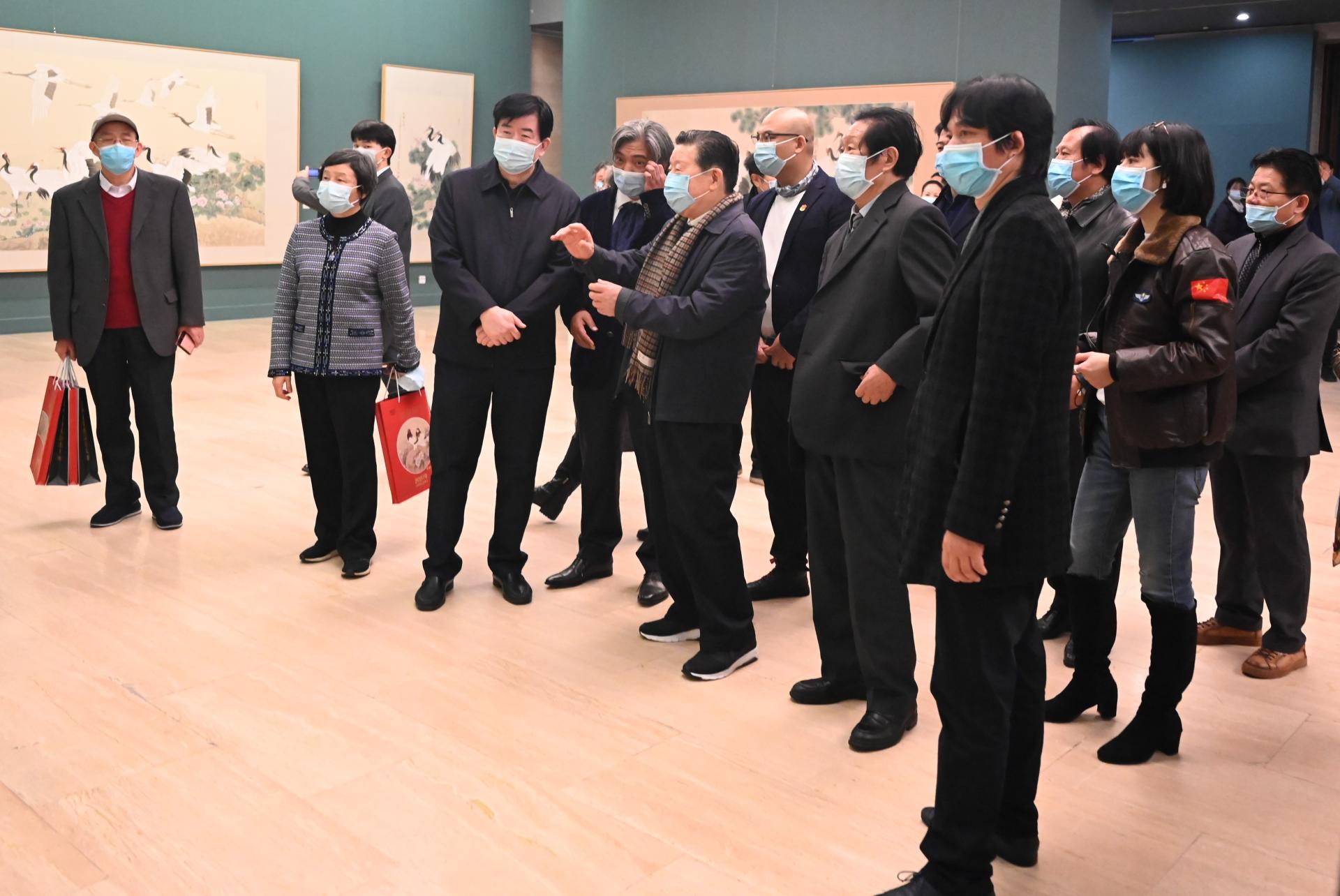 全国政协原副主席、中国文联名誉主席孙家正,中国文联党组书记、副主席、书记处书记李屹,中国文联原副主席杨承志等领导在中国美术馆观看喻继高作品展