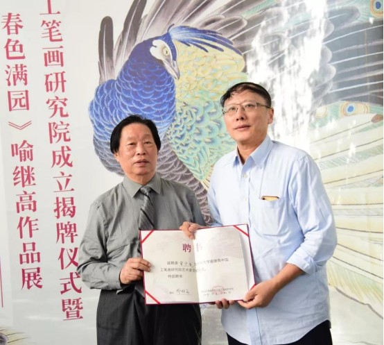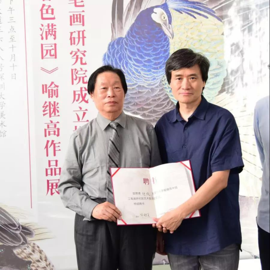 9月20日下午,以中国当代杰出的工笔花鸟画大师、江苏省中国画学会顾问喻继高先生命名的“深圳大学喻继高中国工笔画研究院”成立揭牌仪式暨“《鸟语花香·春色满园》喻继高作品展”于深圳大学美术馆举行。著名工笔画大师喻继高先生亲临现场,为深圳大学喻继高中国工笔画研究院揭牌,并为艺术委员会成员颁发聘书,为喻继高作品展开幕剪彩。