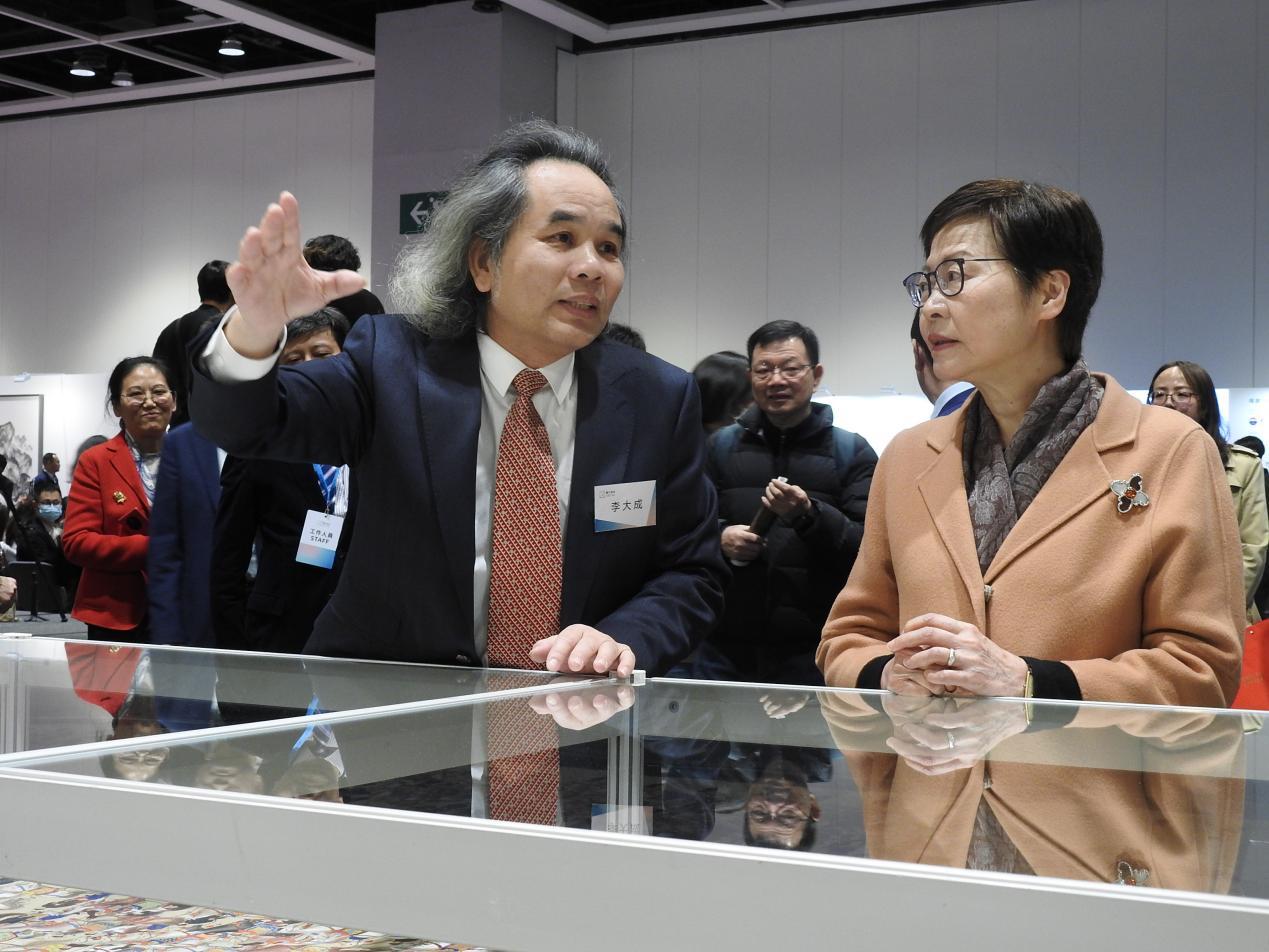 12月22日下午,李大成参加香港第二届“艺文香港”闭幕式,香港第五任特首林郑月娥、紫荆文化集团董事长许正中,香港中文大学前校长金耀基等领导出席了闭幕式。闭幕式上林郑月娥、许正中、李大成等嘉宾为香港“西泠杯”全港中青年书画篆大奖赛获奖者颁奖者。